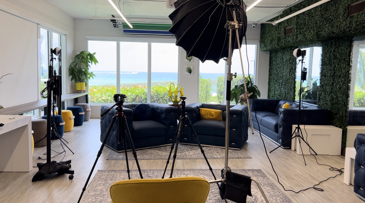 MiZONE offers the space for your entire production team or an in-house 360-service with a team of video production experts of the highest quality in every aspect of digital imaging, video production and creative services, which help to tell a story, sell a product, and/or build credibility for our clients. With panoramic views and direct access to the Atlantic Ocean, the atmosphere at MiZONE has a pre-set wow factor, which naturally creates a space that feels luxurious, professional, comfortable and inviting. Productions can take from as little as 3 – 5 hours or as long as 3+ months – MiZONE houses everything your team requires throughout the entire process. With partnered hotels walking distance from the venue, personal lockers, dressing rooms, shower, storage space, etc. MiZONE provides a top of the line, boutique style production studio like none other. Services include: Initial brainstorming, creative storyboarding, budget preparation, logistics, permitting, casting, directing, producing, shooting, editing and finally, the delivery of powerful projects. Our photo studio houses several backdrops for all your photography needs. MiZONE is the perfect South Florida location to create weeks or months or content for social media, commercials, interviews, or any type of production.